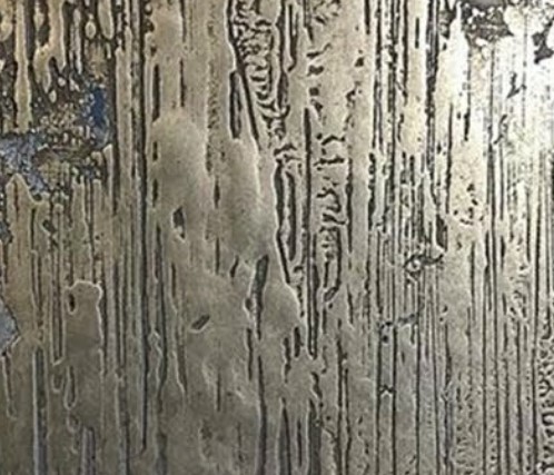 Metalik, parlak ve ışık yansımaları olan dinamik bir yüzey sunar.